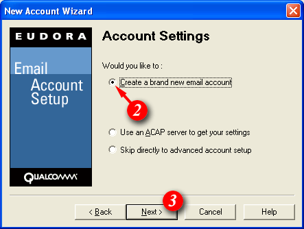 This guide is for Eudora 5.2.1 only and assumes you have just installed the application. If you have previously used Eudora, or are currently using it for another email account you will not see the 'New Account Wizard' when you open the application. To launch the Account Wizard: click the 'Tools' menu > select 'Personalities' > right-click the personalities window > and select 'New' from the drop-down list. If you are unable to select the 'New' option you may be using the 'Eudora Light' freeware application. If you need to setup multiple accounts/personalities you will need to upgrade to the full featured version or use a different email client (e.g. Outlook Express).