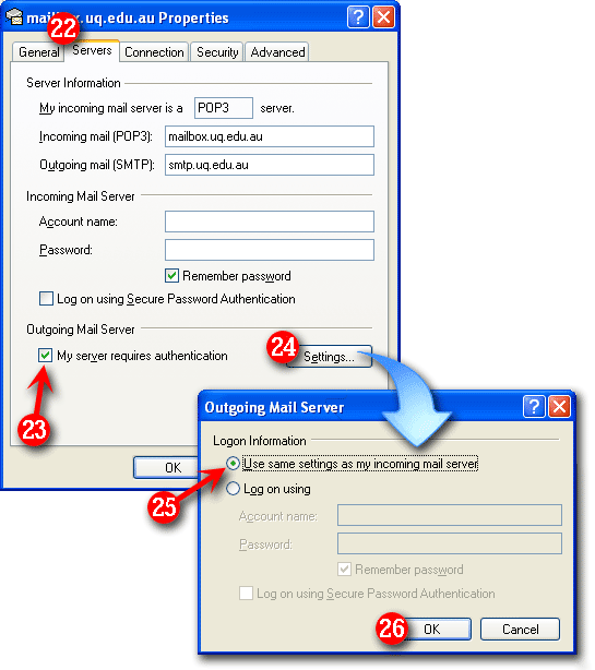 | 11)'My incoming mail server is a .. ' should be set to POP3 (default setting) | |||||