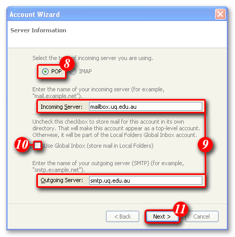 | 10)Un-tick 'Use Global Inbox'. |