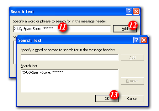 9)Put a tick in the 'with specific words in the message header' checkbox