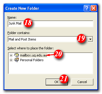 18)Enter a folder name i.e. Junk Mail