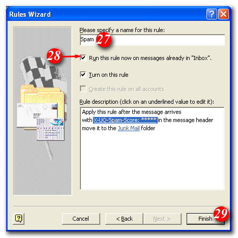 28)Put a tick in the 'Run this rule now on messages already in the "Inbox"' checkbox (optional)